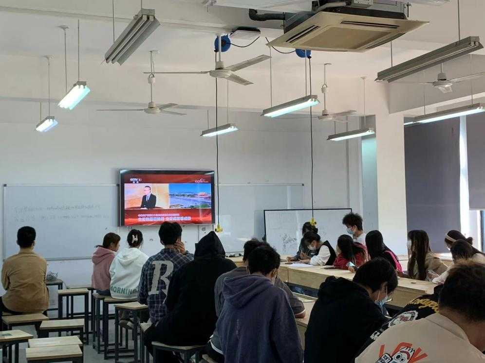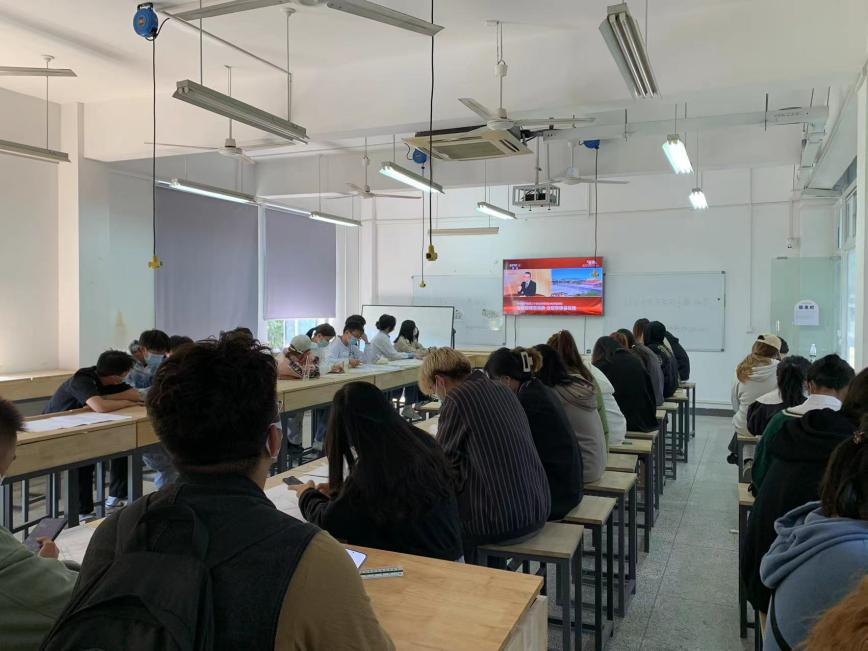 学院共设四个会场组织学生集中观看,同时其余学生还在寝室、图书馆等地通过网络直播收听观看,认真学习领会大会精神。