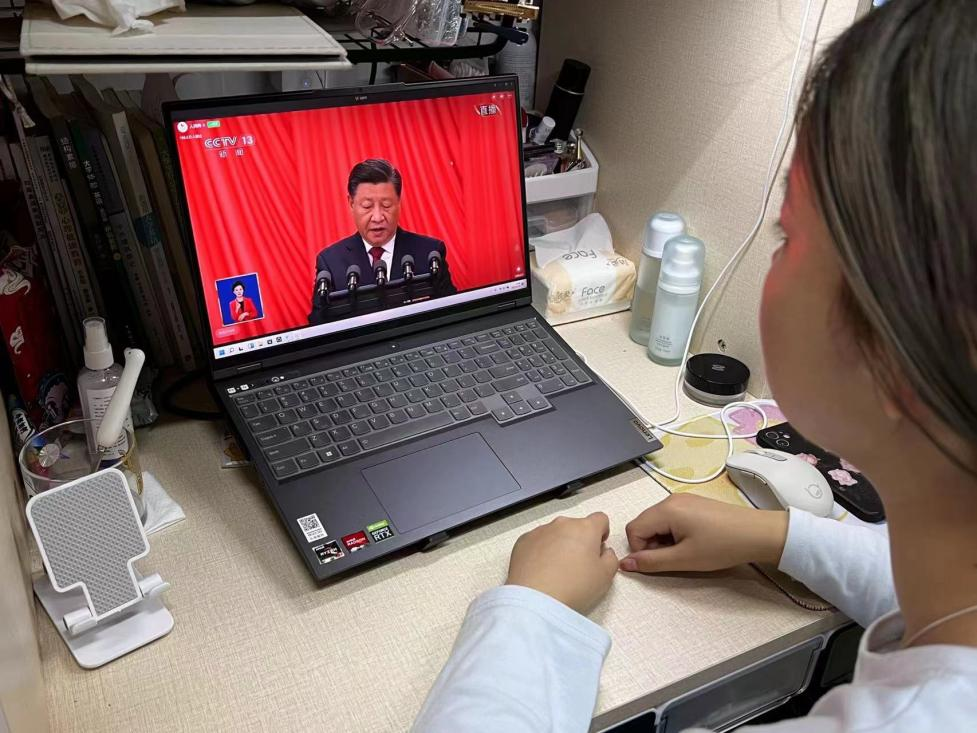 现场学生一致认为,党的二十大是在迈上全面建设社会主义现代化国家新征程、向第二个百年奋斗目标进军的关键时刻召开的一次十分重要的大会。习近平总书记的报告鼓舞人心,催人奋进。大家纷纷表示,要认真学习习近平总书记所作的报告,密切关注大会进程,把思想和行动自觉统一到党的二十大精神上来,自觉践行党中央对青年的嘱托,为实现第二个百年奋斗目标不懈努力!