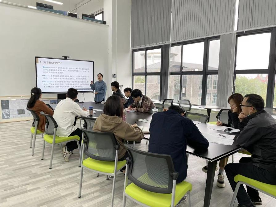 随后,戴欢老师结合示范教案讲解了新教案撰写过程中的注意事项,如何结合BOPPPS教学模式6步教学法的运用提升教案撰写水平,同时指出新教案撰写应着重从激发学生的学习兴趣,调动学生的主观能动性,提高学生的创新能力等方面入手,关注的重点放在学生学到了什么等方面,写好教案,科学高效规划课堂。