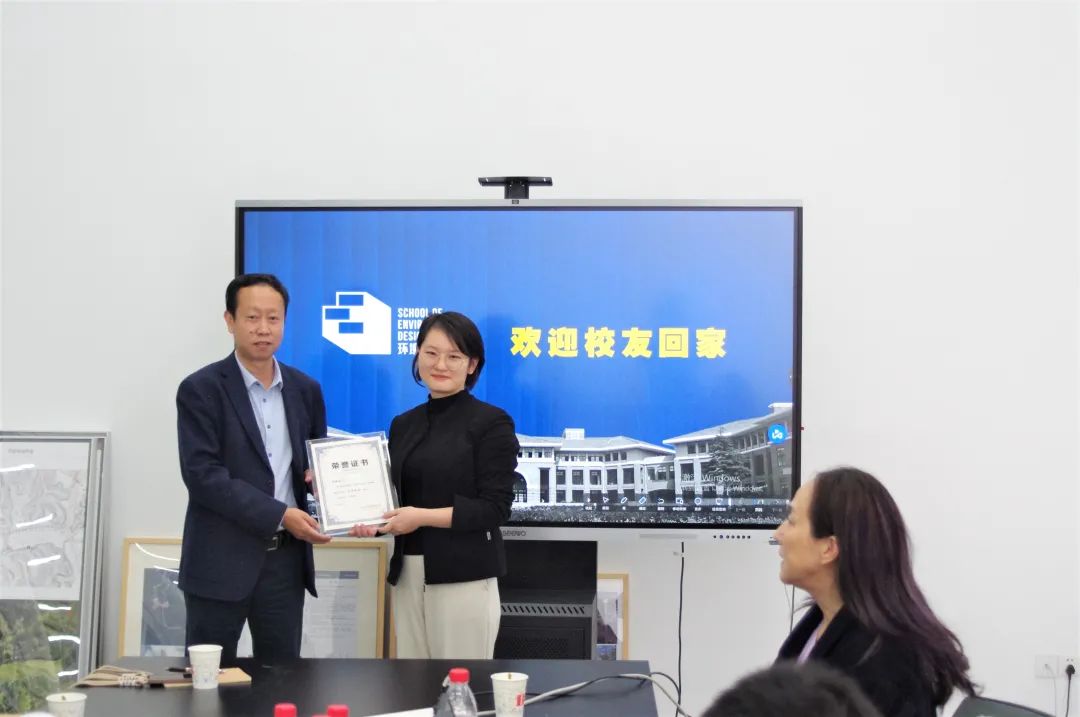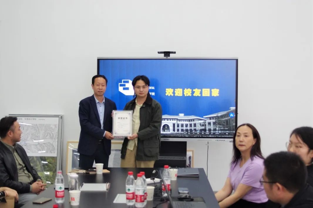 胡俊涛是我院风景园林专业2017届毕业生,毕业后在北京从事艺术策展工作,2020年进入互联网行业,2022年初创办Artverse艺术元宇宙平台,正式进入艺术元宇宙及数字艺术相关领域。会上,两位校友对毕业后的工作经历特别是主持参与过的行业前沿的项目进行了分享,与会领导围绕人才培养、元宇宙与时装周合作项目、智慧校园等方面进行了充分讨论,并向两位校友颁发了“荣誉校友”证书,赠送了校友纪念品。