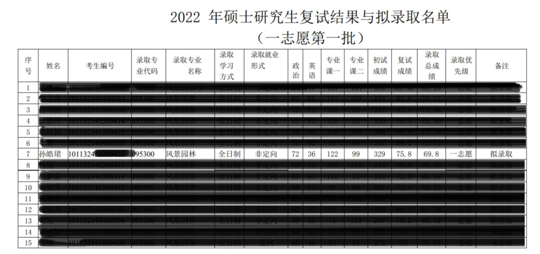 英语36分、政治72分、风景园林基础122分、快题设计99分