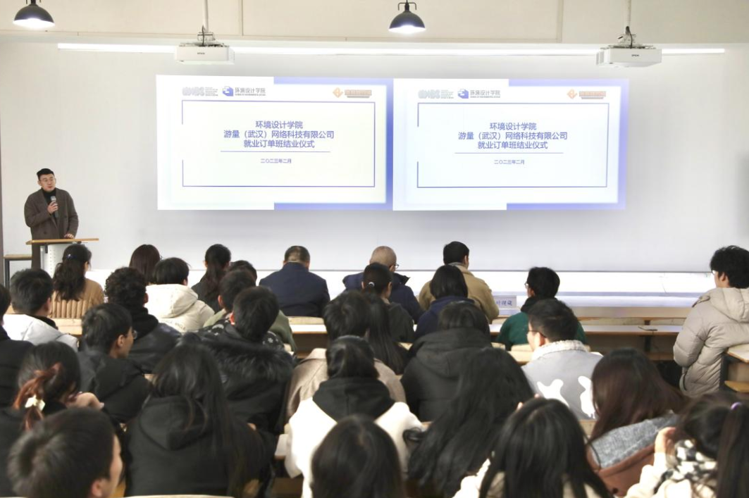 2023年2月24日,yl7703永利集团与游量(武汉)网络科技有限公司第一期就业订单班结业仪式在和光3019隆重举行。学校校长龚少平、副校长兼yl7703永利集团院长陈顺安、招生就业处副处长黄雯、学院党总支书记谢曦临、常务副院长叶砚蒇、副院长左苍峰、公司负责人杨毅(2009届校友)和订单班同学出席了结业仪式。仪式由yl7703永利集团分团委书记黄俊杰主持。