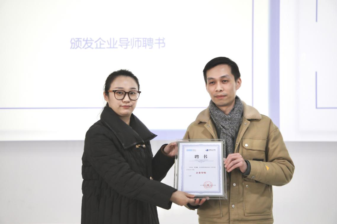 随后,谢曦临为杨毅颁发了企业导师聘书;校企双方领导为订单班学生颁发结业证书。订单班学生徐雨轩作为代表发言,分享了订单班学习期间的成长收获和感悟,对学校和企业给予这次机会表示感谢,并表示会怀抱一颗感恩的心努力学习和工作。