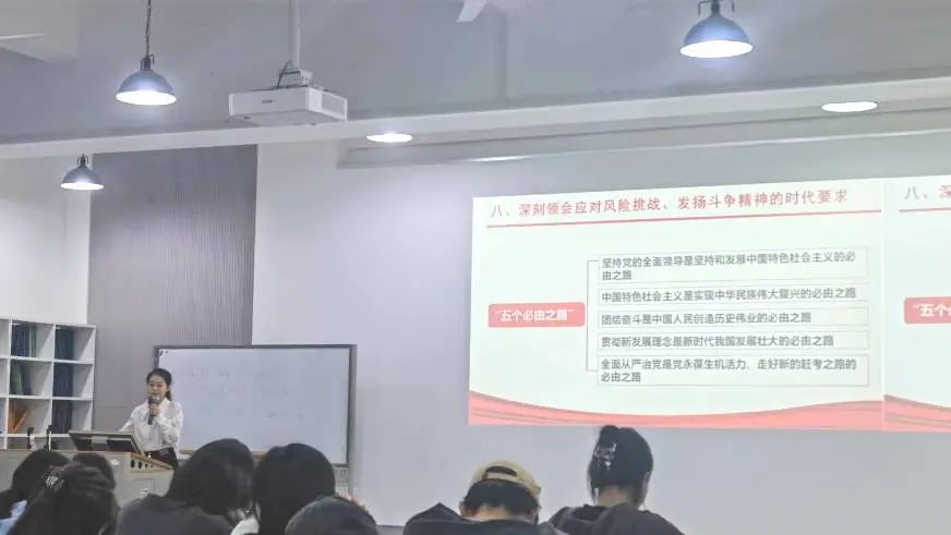 本次宣讲活动的最后,宣讲人王吉喆呼吁广大青年学生:“广大青年要坚定不移听党话、跟党走,怀抱梦想又脚踏实地,敢想敢为又善作善成,立志做有理想、敢担当、能吃苦、肯奋斗的新时代好青年。”