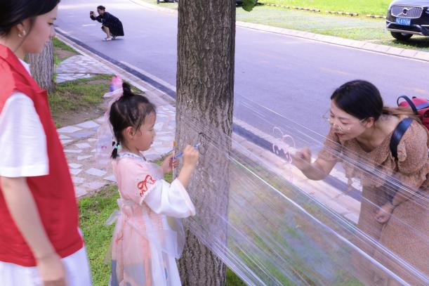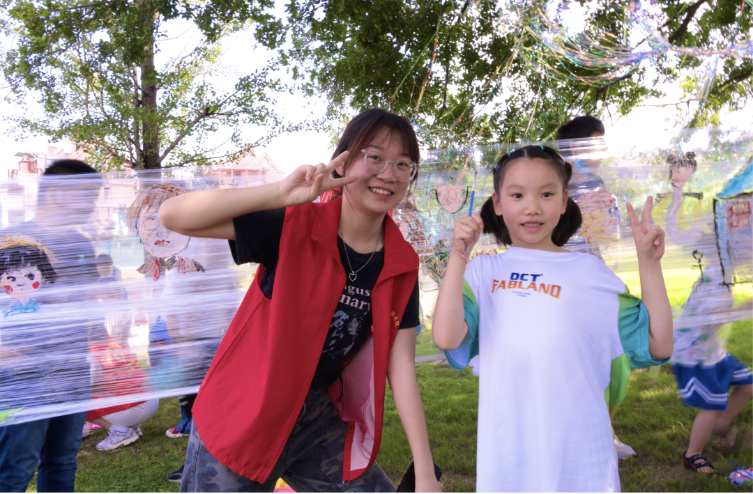 在三方共同协作下,小朋友在保鲜膜上感受着不一样的绘画体验,都收获着不一样的童真乐趣,体会不同的快乐,同时他们的快乐也感染着家长和志愿者。