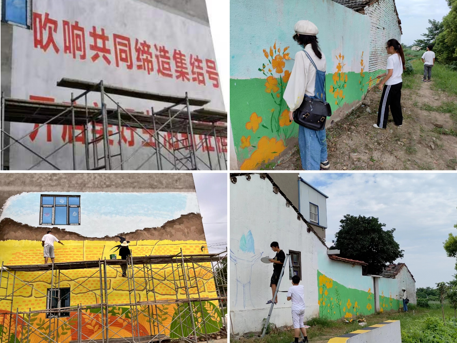 夏日炎炎,骄阳似火。一顶一顶遮阳帽下,是“筑梦”服务队监利分队成员们红彤彤的脸,汗珠顺着他们的脸颊从下巴滚落。自7月3日出发至今已历时一周,队员们每天日照而出,日落而归,时刻秉承着吃苦耐劳的精神。在一周的磨砺下,团队合作能力越来越强,作品完成时间也越来越快。