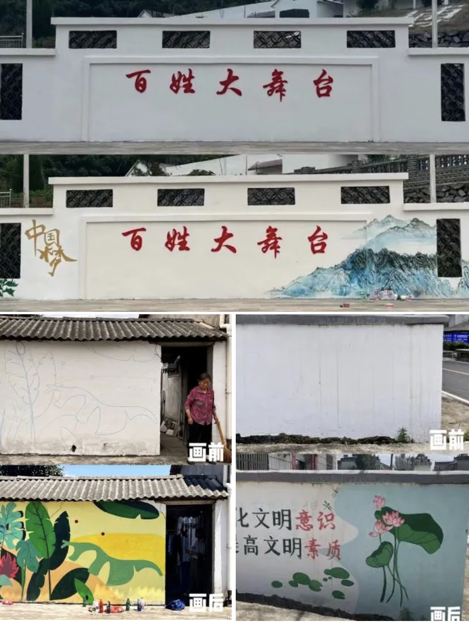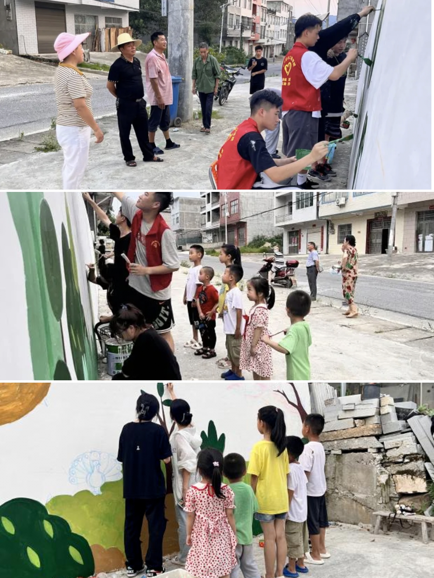 “这些乡村墙绘,不仅扮靓了乡村,还提高了村民的精神文化生活品味。”村民指着墙绘开心的说。下乡实践的同学们用群众喜闻乐见的形式在墙壁上图文并茂地呈现出来,使原本“冷冰冰”的墙面瞬间灵动起来。一墙一文化,一墙一风景,将美丽的乡村融入墙绘艺术,简单到创意的华丽蝶变,谱写着乡村振兴新篇章。