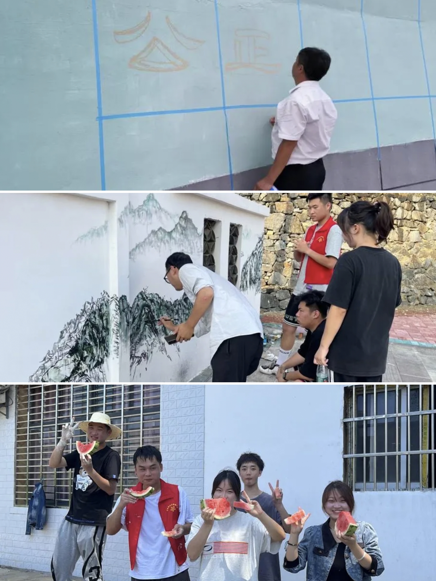 “不论是在烈日的照耀下,还是在乡间寂静的夜晚中,我们的工作一直都在进行,我们不仅仅是墙绘小能手,还是团建精神的宣传者。空余的时间我们也集体唱歌、吃西瓜,和村民们亲切地交流,和指导老师王轩也、李飞老师讨论墙绘主题,另外村书记还亲自参与我们的活动,这让我们都深深感受到了乡村的质朴和热情,这不仅仅是一个人的独家记忆,也是我们所有人的独家记忆!”团队负责人胡丽阳同学有感而发。
