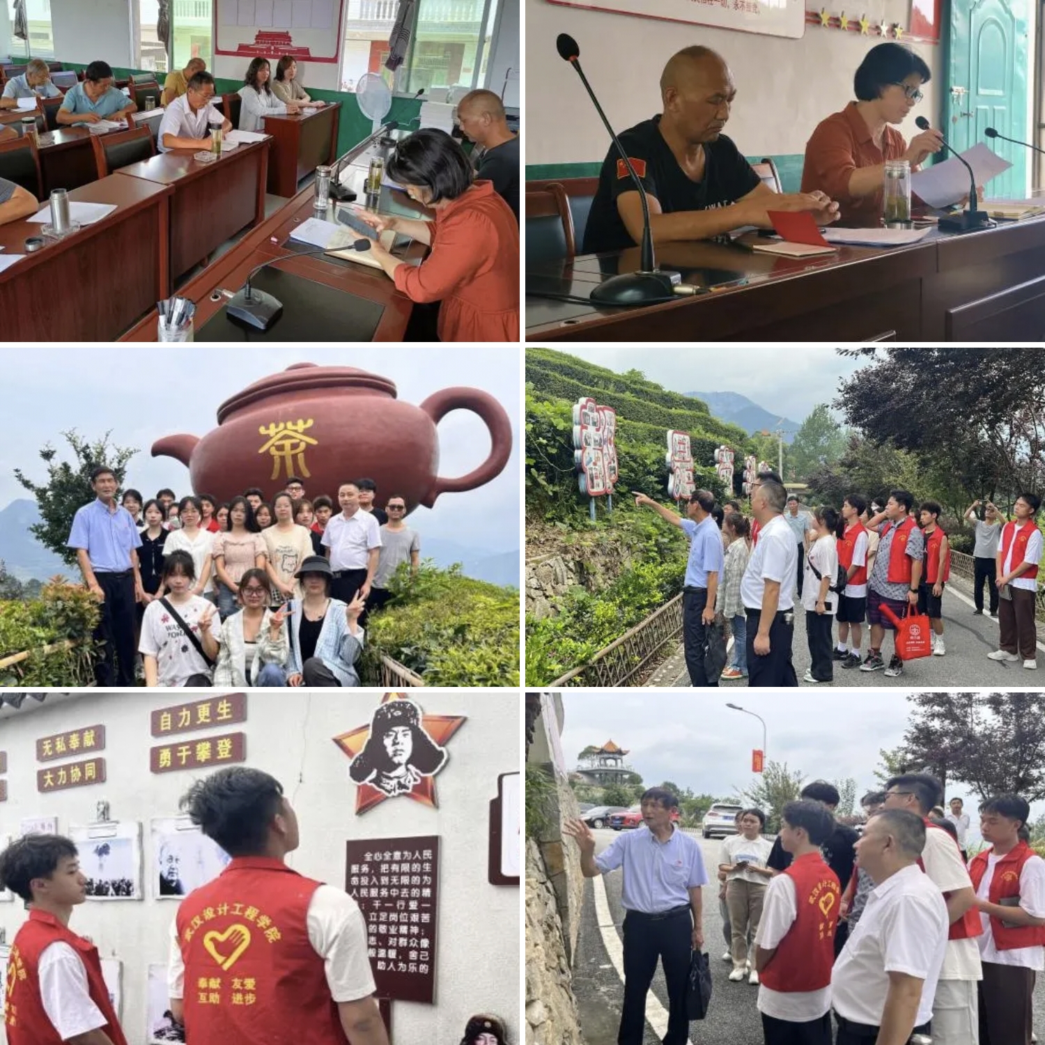 为更好地贯彻习近平新时代中国特色社会主义思想,“筑梦”服务队蕲春分队前往大同镇李山村开展红色主题教育活动。在这里通过田祥森同志的讲解,同学们更好的了解李山村的百年历史,真切地感受到了李山村人民欣欣向荣的精神面貌,和对美好生活到来的期待向往。 李山村人在村书记的带领下,以茶叶产业兴村富民,以茶旅联动实现富裕梦。这种“矢志不渝,艰苦创业,逐梦前行”的精神打动着每一位同学。