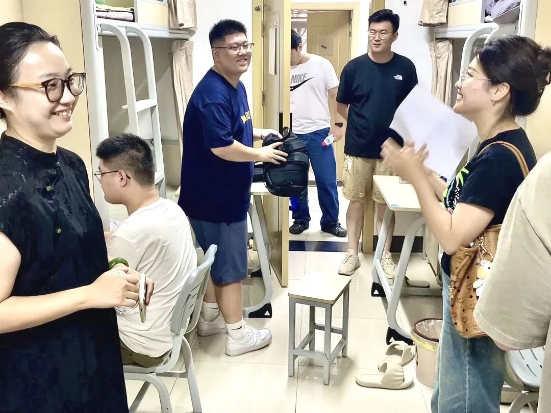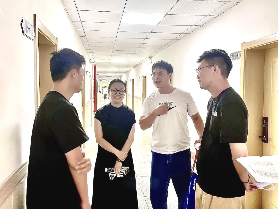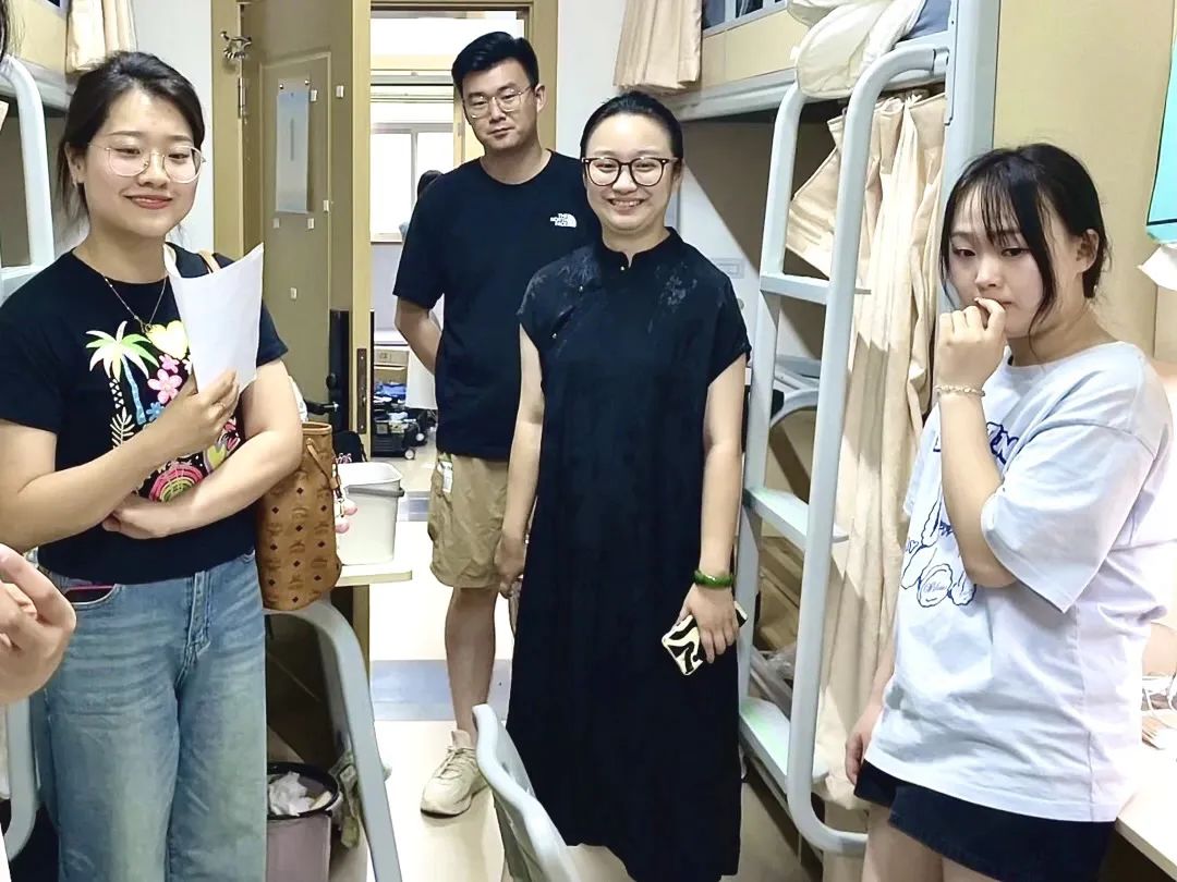 为顺利迎接专升本新生报到,使他们尽快适应校园生活,营造良好和谐的学习生活环境,2023年9月2日下午,yl7703永利集团党总支书记谢曦临带领黄俊杰、李闯、李帅三位新生辅导员深入走访2023级专升本新生寝室,看望报到的新同学。