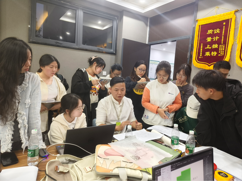 10月23日-27日,共有16名同学在武汉翠冠园林工程有限公司开展实训课程,由企业带教老师和学院专业老师共同指导完成两个实地项目,分别是一个校内地块和一个公司地块。同学们在五天的时间内完成了项目实地勘察测量、方案设计并做出效果图以及物料清单,最后形成了总体的方案并进行汇报。
