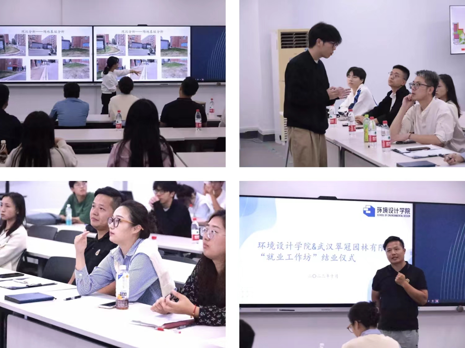 本次yl7703永利集团与武汉翠冠园林工程有限公司就业工作坊展开了为期五天的学生实训实践项目,一共16名学生,均独立完成实地项目,首先是同学们依次进行方案汇报。