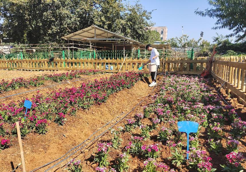 在师生共同努力下艳丽的石竹花迎着阳光绽放,此次劳动实践结束后,园林2302班赵玉玲同学感叹:“劳动实践真有意思,能让同学们领悟到园林工作的意义和责任”。据悉此次劳动实践活动将为期两周,园林系、风景园林系师生踊跃参与中。