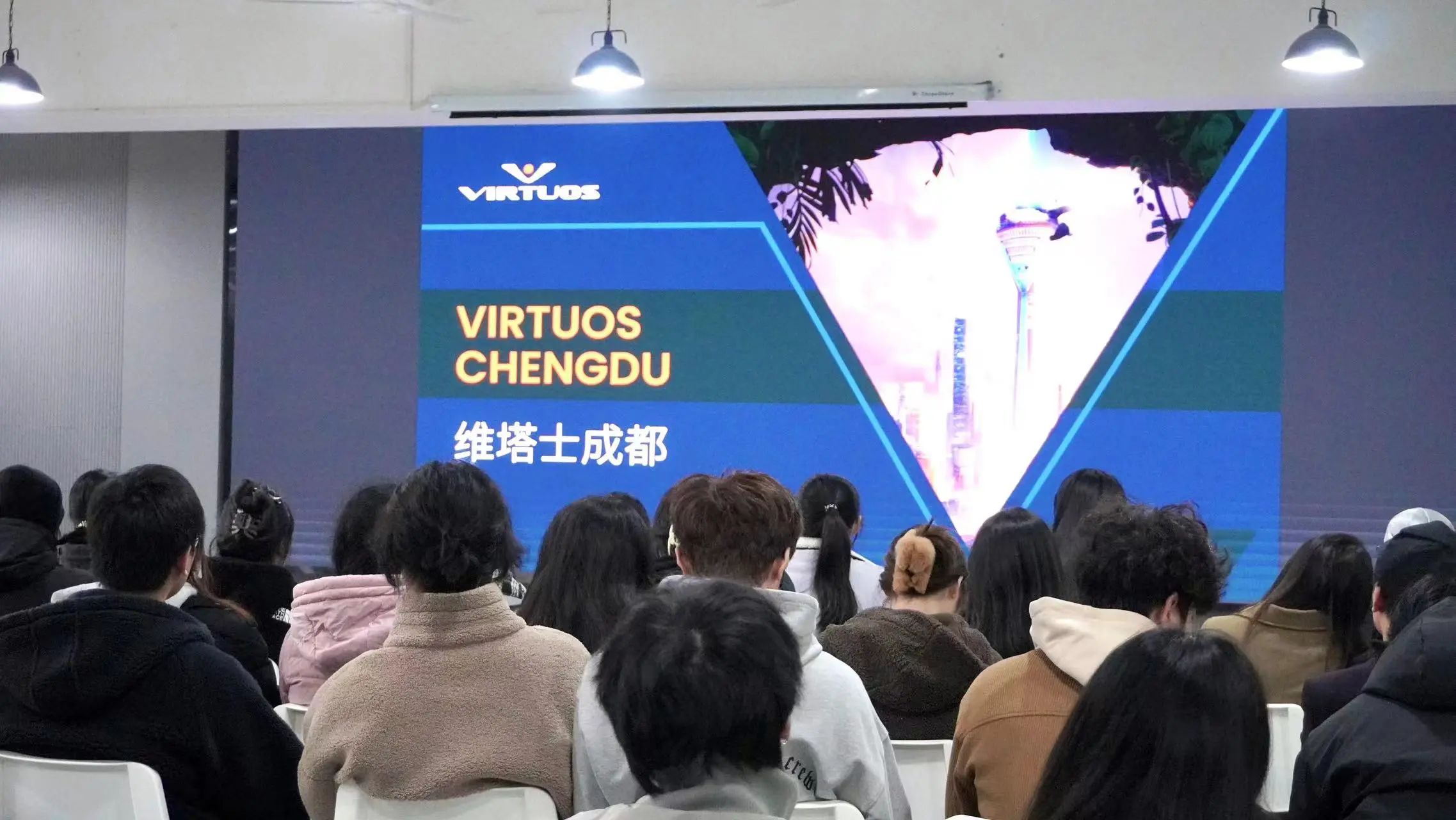 (本网讯:杨春颖 王一卉)2023年11月30日下午2点,维塔士成都工作室于和光3019开展了秋季校园招聘线下宣讲会,我院大三、大四共五十余名学生参与本次活动。本次宣讲会介绍了岗位情况、工作内容、岗位要求等。