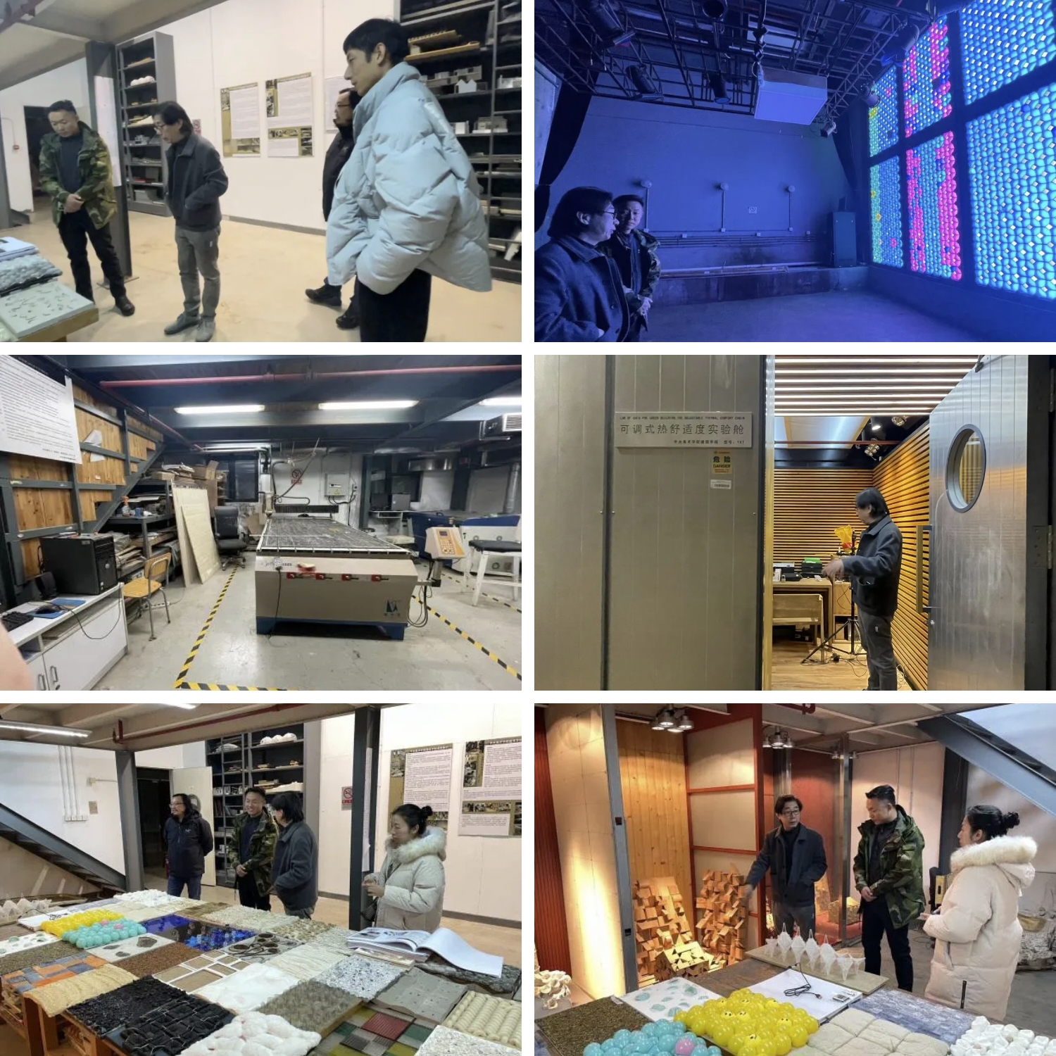 在清华大学美术学院,环境艺术设计系党支部书记李朝阳、系副主任于厉战较全面的介绍了环境艺术系的人才培养体系及教学开展情况。针对我方提出的如何创新开展实践教学的问题两位老师以夏季小学期为例讲述了他们自己的方式方法,随后双方还就教学改革、艺术教育与产业发展的趋势等情况进行了深入的交流。最后于厉战老师引导参观了艺术设计的多个实验室,参观了实验室的设置、设备使用和管理情况。