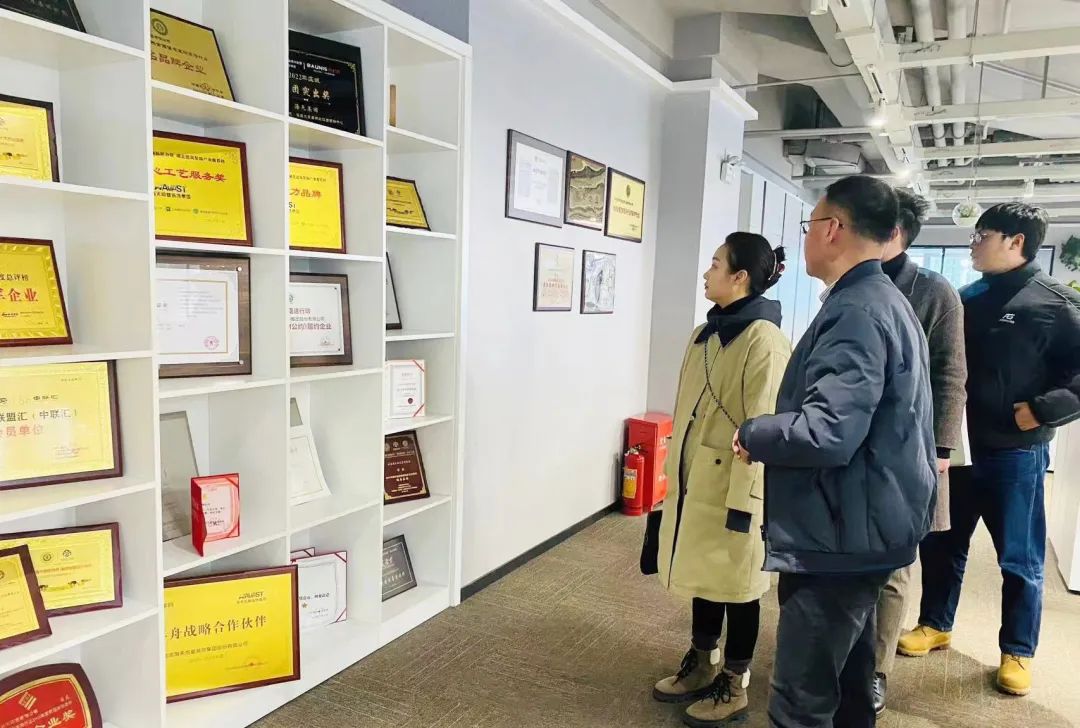 海天时代研发中心总监谭智、商务经理易建华、办公室主任刘平对谢曦临一行人的来访表示热烈的欢迎。在公司领导的陪同下,谢曦临一行人先后参观了企业的办公室环境、文化走廊、发展历程,对公司业务板块有了全面了解。