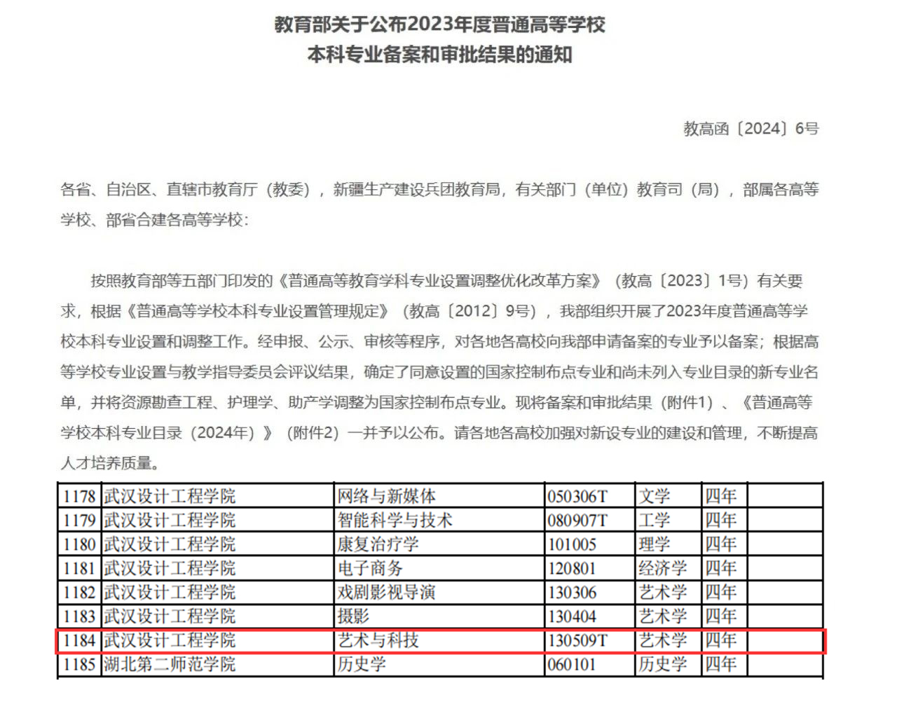 近日,教育部发布了《关于公布2023年度普通高等学校本科专业备案和审批结果的通知》,我院新申报专业“艺术与科技”(专业代码:130509T艺术学)获批。
