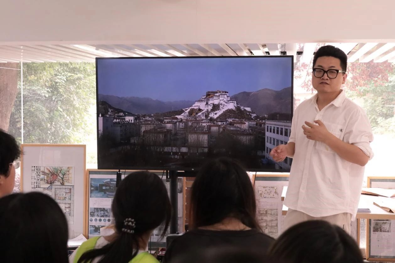 活动中,姚康老师以《江孜抗英纪念馆》项目为引,首先带领同学们领略了西藏地区的自然美景与人文风情。在一张张精美的照片中,同学们仿佛置身于那片神秘的土地,感受到了西藏地区的独特魅力。随后,姚老师深情讲述了江孜保卫战的历史故事,将同学们带入了那段波澜壮阔的岁月。紧接着,姚老师结合个人丰富的项目经验,深入剖析了团队协作在环境设计领域的重要性。他强调,一个优秀的团队能够汇聚每个成员的智慧和力量,共同面对挑战、解决问题。在团队中,成员们需要学会倾听、理解、尊重和信任彼此,通过有效的沟通与协作,共同推进项目的进展。这种团队精神不仅对于完成高质量项目至关重要,更是未来职业生涯中不可或缺的重要素质。