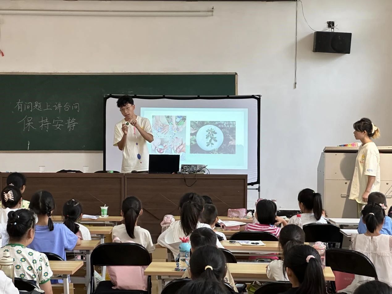 本次社会实践将学院“自然课堂”志愿服务项目与“暑假学堂”爱心托管班深度融入,不仅有效缓解了暑期“看护难”问题,也让青年学生更加贴近社会、了解民生,培养社会责任感和奉献精神,强化实践育人功能。同时,该项目以美育为核心,将自然与艺术相结合,培养少年儿童的审美能力和创造力,促进身心健康发展,为他们的全面发展奠定坚实基础。