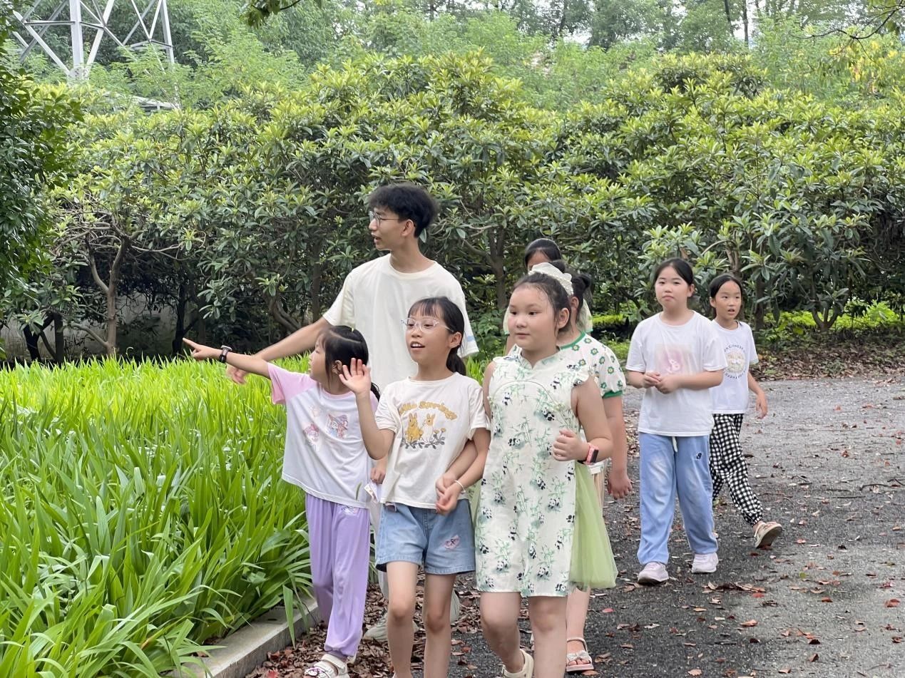 志愿者们还精心策划了一系列丰富多彩的户外教学活动。在志愿者的带领下,小朋友们走出教室,亲近自然,踏上了一场别开生面的植物认知之旅。他们穿梭于绿树成荫的小径间,仔细观察着每一片叶子、每一朵花,从形状、颜色到生长习性,志愿者们耐心讲解,让孩子们在轻松愉快的氛围中学习到了丰富的自然科学知识。