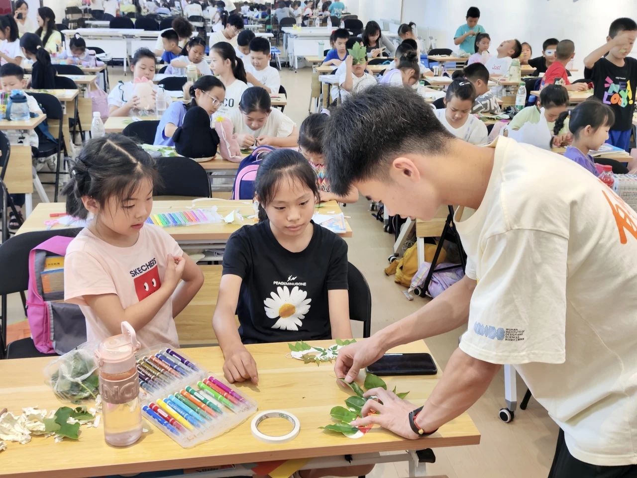 “希望本次实践能成为孩子们心中一段难忘的美育旅程,共同绘就一幅关于探索、成长与智慧启迪的绚丽画卷。”一位志愿者满怀期待地说。7月18至20日,“自然课堂”精彩纷呈,通过开展树叶面具与玻璃纸彩绘课程,让孩子们亲近自然,激发无限想象力与创造力;“暑期学堂”则兼顾学业与体能锻炼,全方位促进孩子发展。本次实践为孩子们搭建起了一个全方位、多维度的美育平台,不仅是一场视觉与心灵的盛宴,更是智慧与美育并进的成长舞台。