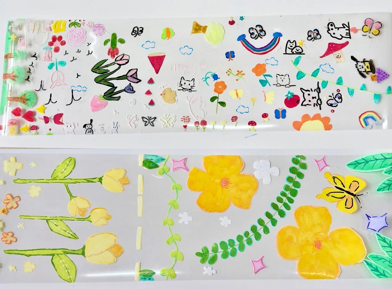 “玻璃晶莹,映出童真笑脸。”7月19日至7月20日,开展了玻璃纸彩绘课程,通过色彩与图案的巧妙结合,玻璃纸会在光线的折射下展现出斑斓多彩的效果,是一次将生活美学融入日常的生动实践,也为孩子们搭建了一个展现创意、释放童真的多彩舞台。