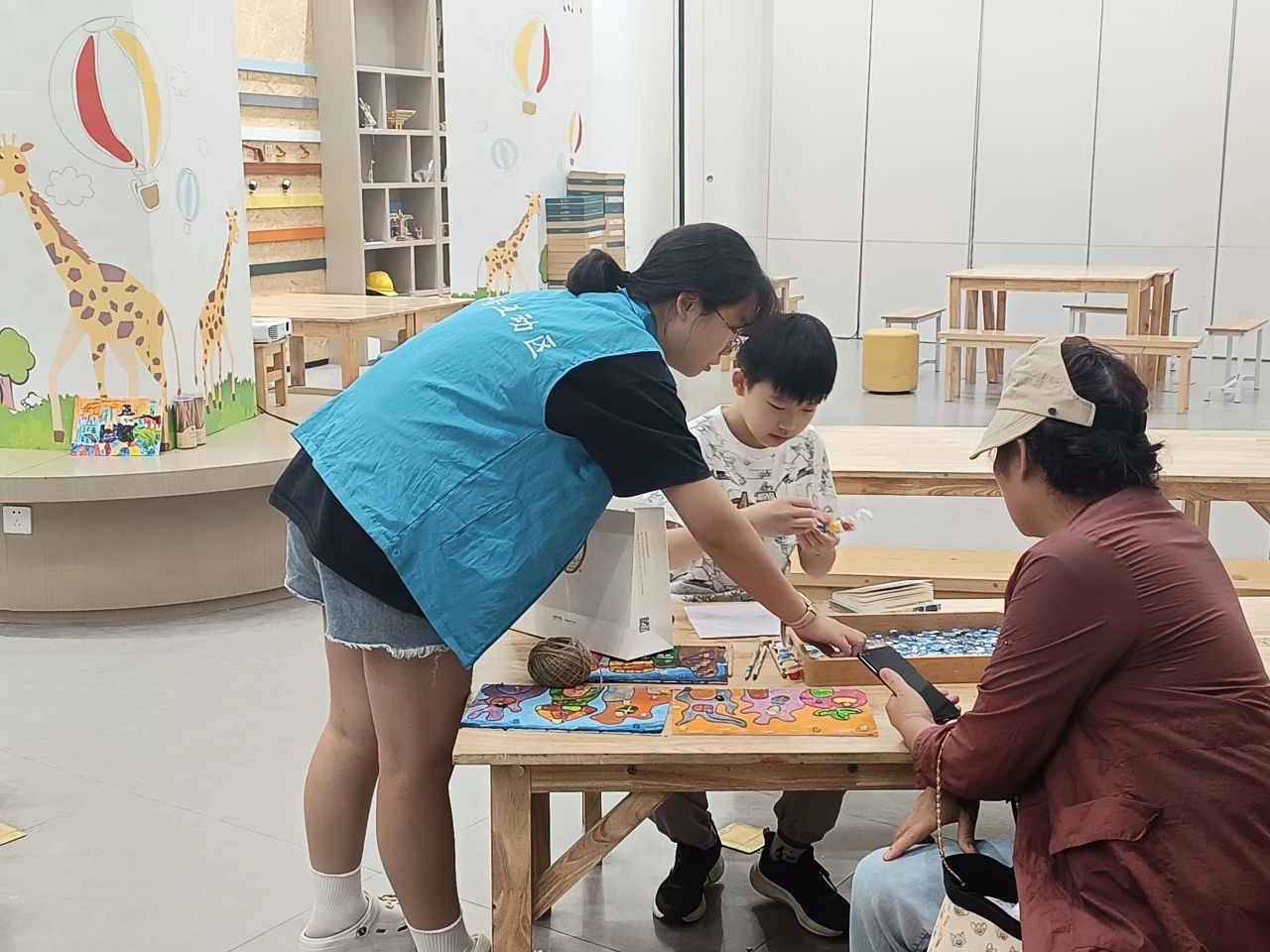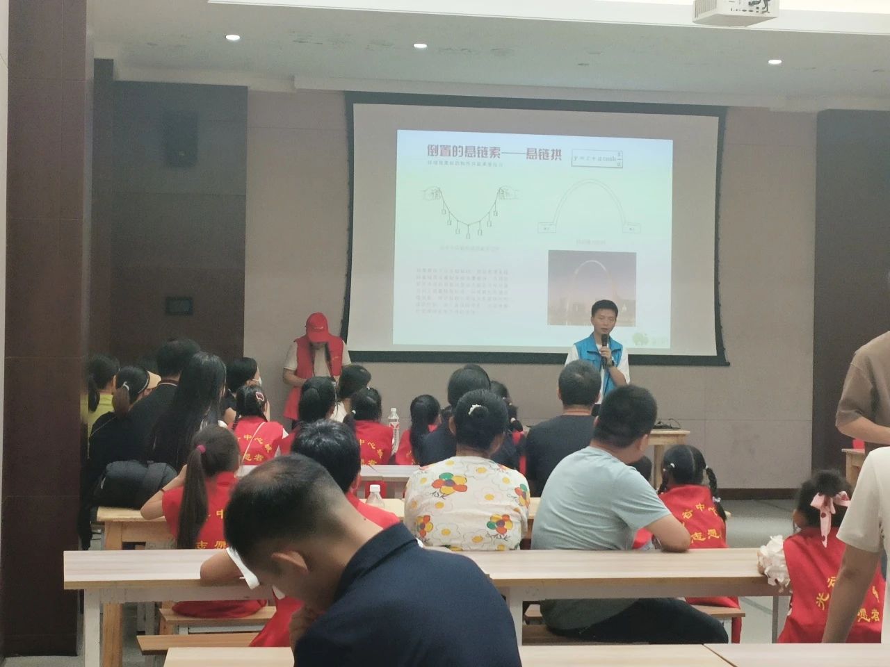 7月20日,引导亲子团看展之后,志愿者们与亲子团一起开启了“搭建课堂”。志愿者引亲子团根据自己的构思,自由搭建。在搭建过程中,孩子们可能会发现某些设计在实际操作中并不稳固或可行。志愿者们鼓励他们探索问题的原因,并思考如何改进结构。这个过程中,志愿者们不仅看到了小朋友的问题解决能力和持之以恒的精神,更是被家长与孩子们一起搭建时的欢声笑语所感染。完成作品后,让孩子们向同伴和家长展示他们的空间结构。分享他们在搭建过程中的想法、挑战和解决方案,这能增强孩子的自信心,也能促进交流和学习。孩子们不仅能享受到创造的乐趣,还能在游戏中学习到基础的科学、技术、工程和数学概念。这样的活动在丰富孩子的生活内容的同时,还能增加亲子时光,增进了父母与孩子之间的交流与默契。