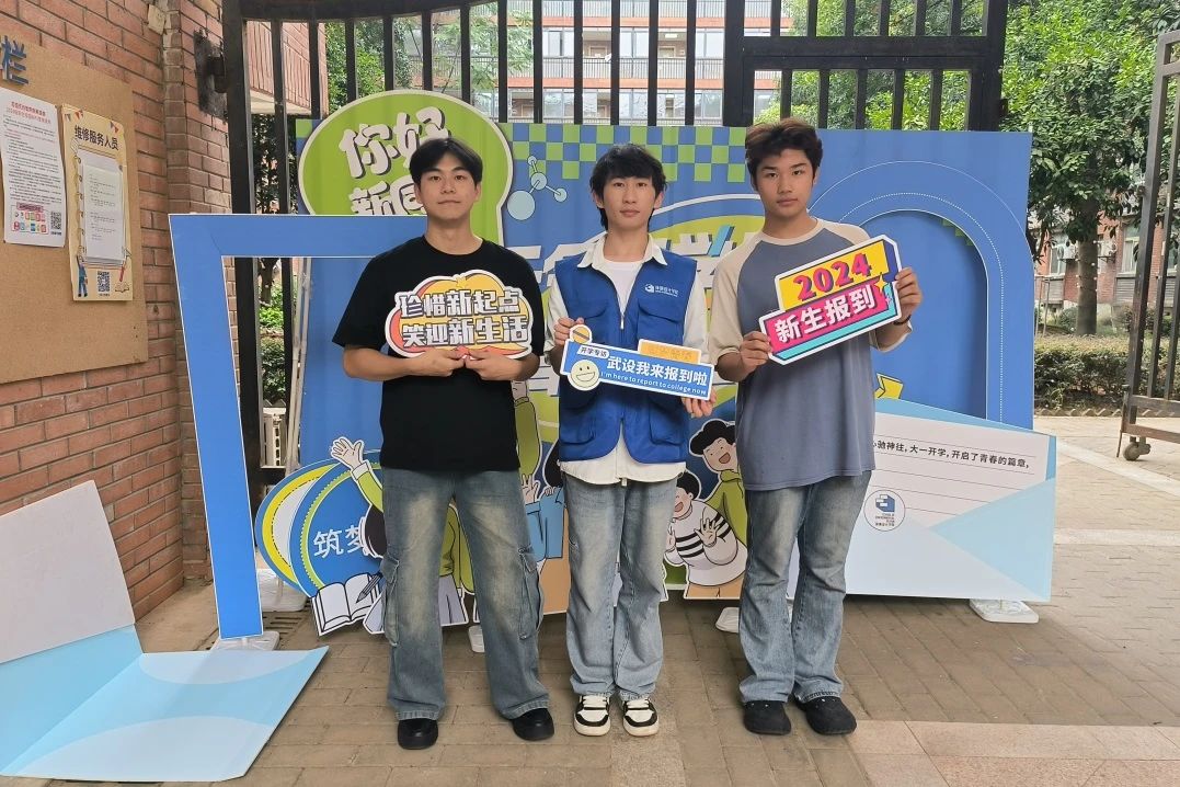 踏入这座美丽的大学,志愿者拿起相机,记录新同学与武设的第一张合影,笑容自信阳光,洋溢着青春的活力。
