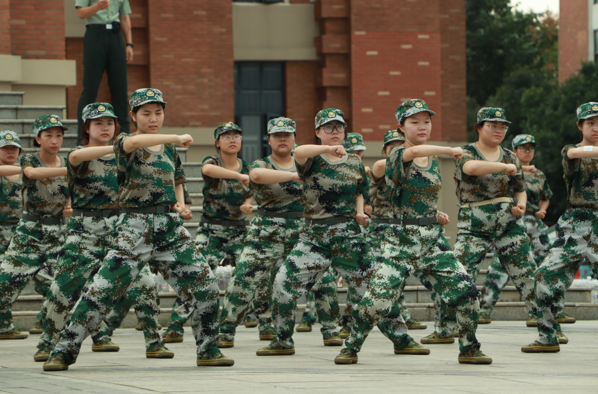 在匕首操、军体拳方阵,战鼓擂响,每一次呐喊都掷地有声,一拳一脚都虎虎生风,刚劲有力,凸显了同学们的铮铮铁骨和顽强意志,赢得了阵阵喝彩与掌声。