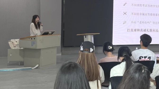 通过心理健康教育、学生管理规定教育、图书馆入馆教育等方式,加强校规校纪教育,引导新生做到懂规矩、守纪律、不逾矩。辅导员郭晓宇、向鋆鹭老师围绕以上内容对新生展开教育活动,让新生们能够更好地适应大学生活,树立正确的价值观和行为准则,为未来的发展打下坚实的基础。