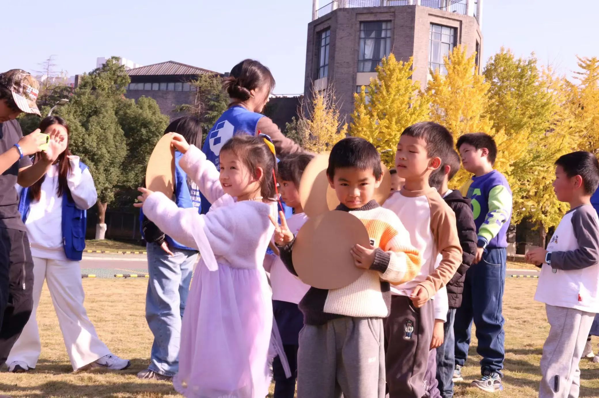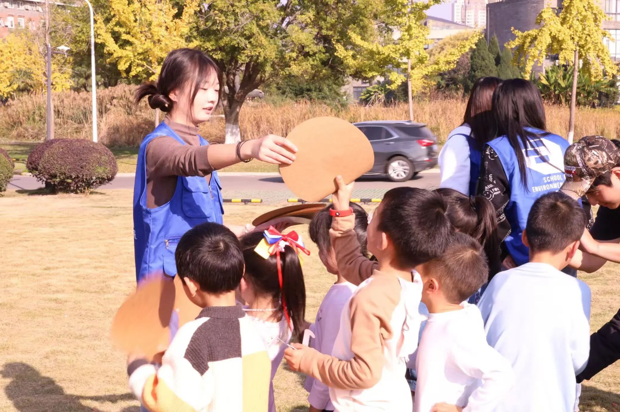 活动开始,志愿者们带领小朋友们玩起了有趣的集体小游戏“丢手绢”、“老鹰抓小鸡”,欢声笑语瞬间打破了冬日的寒冷,现场气氛热烈而融洽。