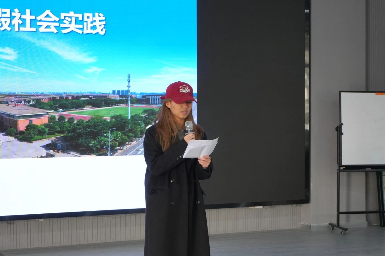 随后,黄老师邀请了往届社会实践表现优秀的学生代表范聿颖同学上台分享经验。她通过自己的亲身经历,向在座的同学们展示了社会实践的丰富性和挑战性,以及通过实践活动获得的成长和收获。这些生动的分享让同学们对即将到来的寒假社会实践充满了期待和动力。