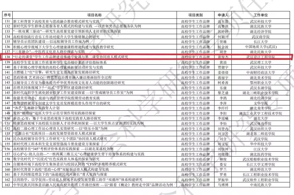 4.“行走的课堂”学生工作品牌获批湖北省教育厅哲学社会科学研究高校学生工作品牌专项立项。