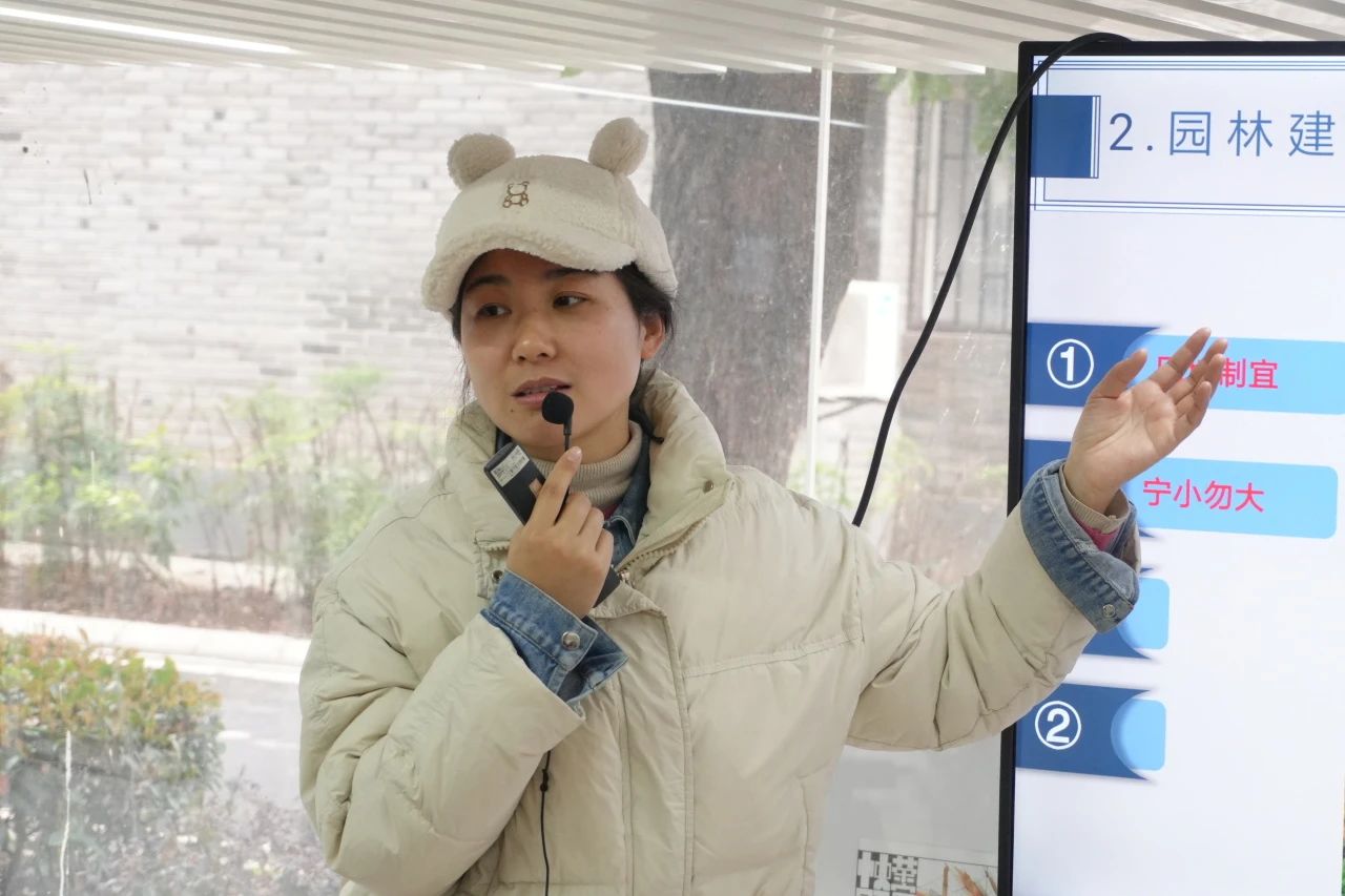 活动伊始,段老师阐述了园林建筑作为园林空间重要组成部分,所具有的实用与美学双重价值。随后,她以扬州瘦西湖为例,详细讲解了园林建筑的设计理念:强调因地制宜,依据地形地貌规划,如傍山建亭、依水筑榭,以实现建筑与自然的和谐统一;在体量上,偏向小巧精致,避免喧宾夺主,从而更好地融入山水环境;空间布局上,追求活泼生动,通过曲折回廊、错落台阶等设计,打破空间的沉闷感;造型风格上,则注重丰富变化,飞檐斗拱与粉墙黛瓦相映成趣。