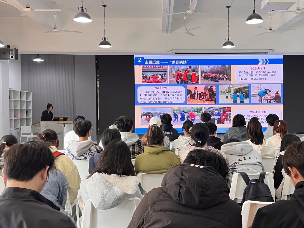 最后,“筑梦”志愿服务队队长聂亚玲同学向全体师生详细介绍了学院志愿服务队的组织架构、发展历程以及品牌项目“自然课堂”。她以生动的案例和真挚的情感,分享了志愿服务中的点滴故事,展现了“自然课堂”如何通过寓教于乐的方式,将自然教育与儿童成长紧密结合,激发孩子们对自然的热爱与对生态的责任感。