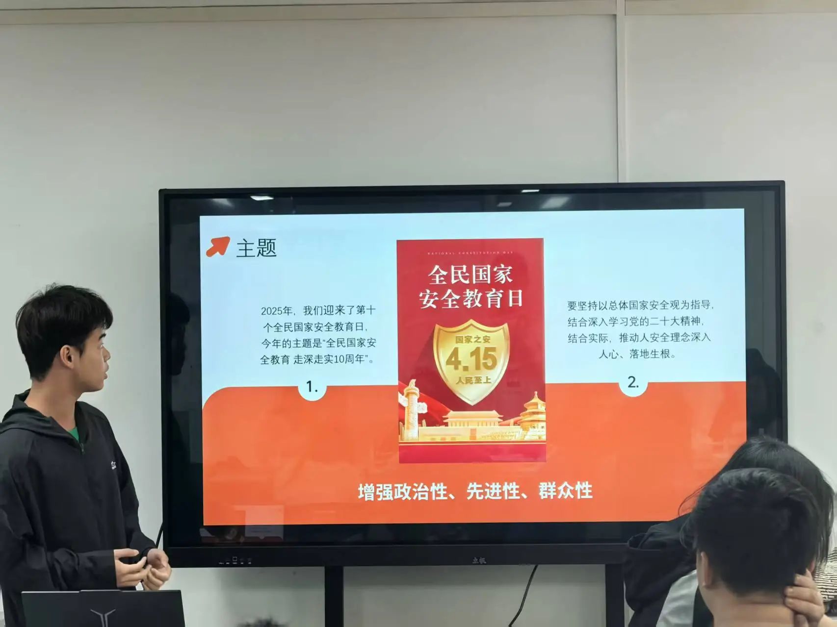 环境设计2403 班开展了一场意义非凡的国家安全知识讲解会。同学们围绕 “国家安全的核心要义”“大学生如何在日常生活中维护国家安全” 等话题展开热烈讨论。会上,通过生动案例,详细讲解了政治安全、网络安全、生态安全等多领域知识,剖析了国家安全的系统性与复杂性。同学们踊跃发言,提出如提高网络信息甄别能力、参与环保志愿活动助力生态安全等具体行动。这次讲解会,帮助同学们全面理解国家安全的内涵,增强了维护国家安全的使命感。