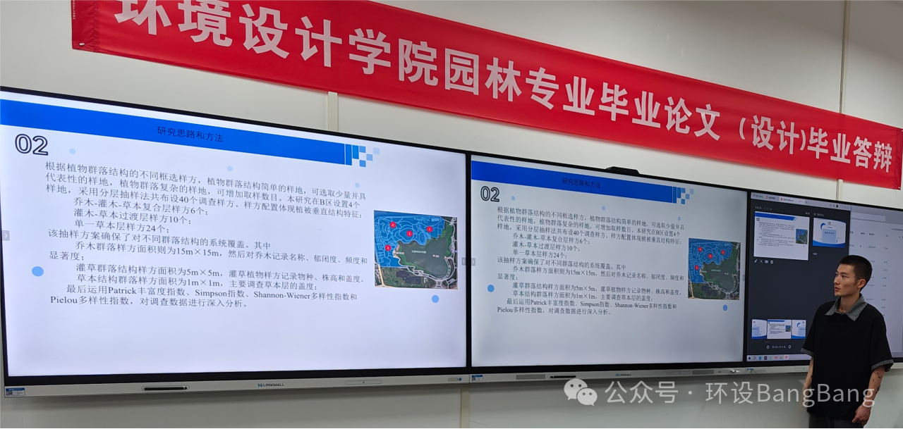 答辩委员们的目光穿梭于图纸的等高线与论文的文献综述,从植物群落的生态效验到景观节点的文化转译,每一处细节都经历着多维度的学术审视。"如何平衡城市公园与居住区更新的功能性与场所记忆存续?" "植物景观评价模型能否适配现代公园景观现状?" 连珠炮式的追问在空间诗学与工程逻辑间架起天桥。