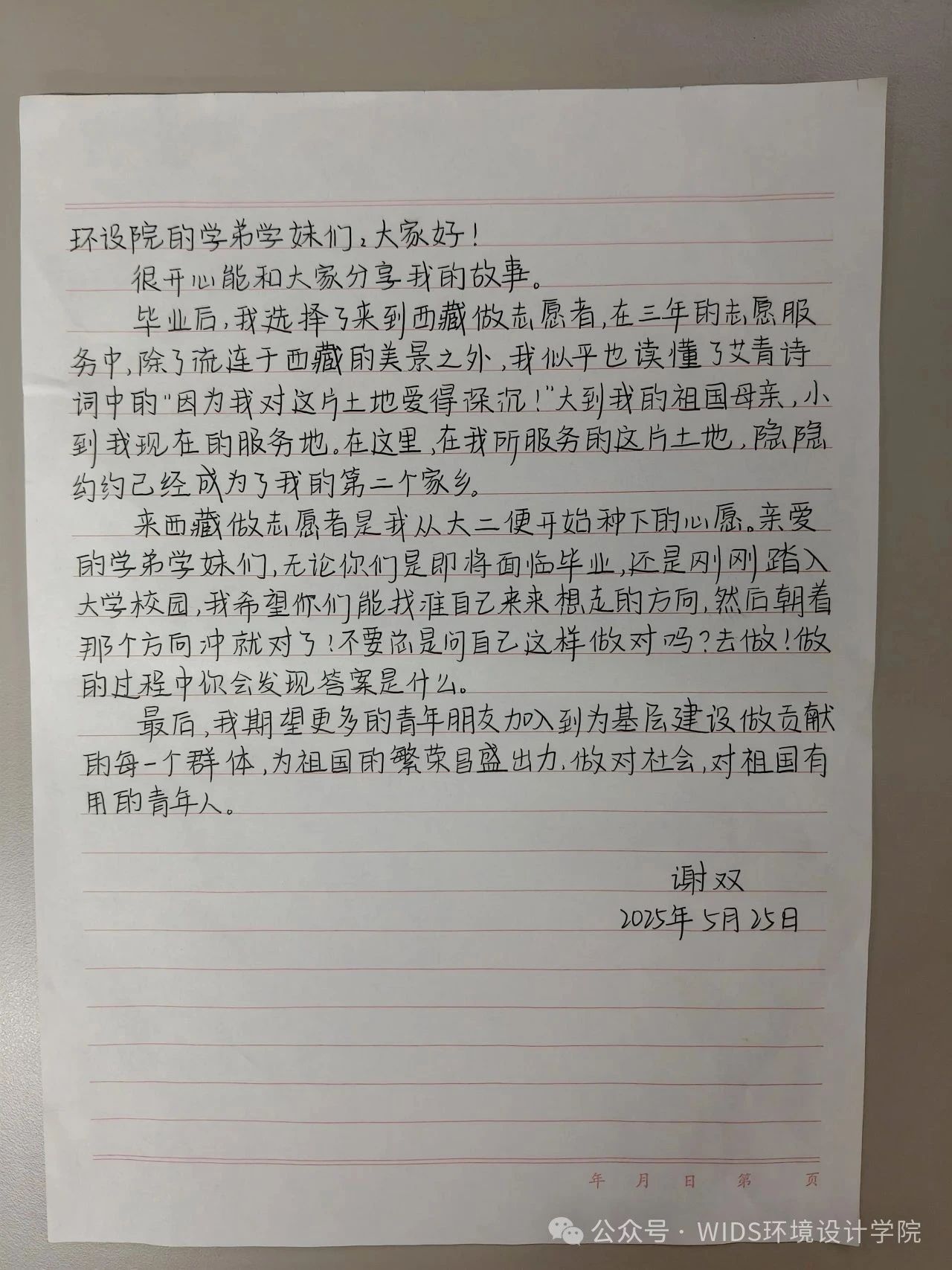 风景园林2404班何梓倩的信笺上,工整的字迹书写着志愿初心:“要以学长学姐们为榜样,积极参加志愿服务活动,让青春在奉献中绽放光彩。我愿化作一株扎根基层的树苗,以专业所长为群众撑起一片绿荫。”