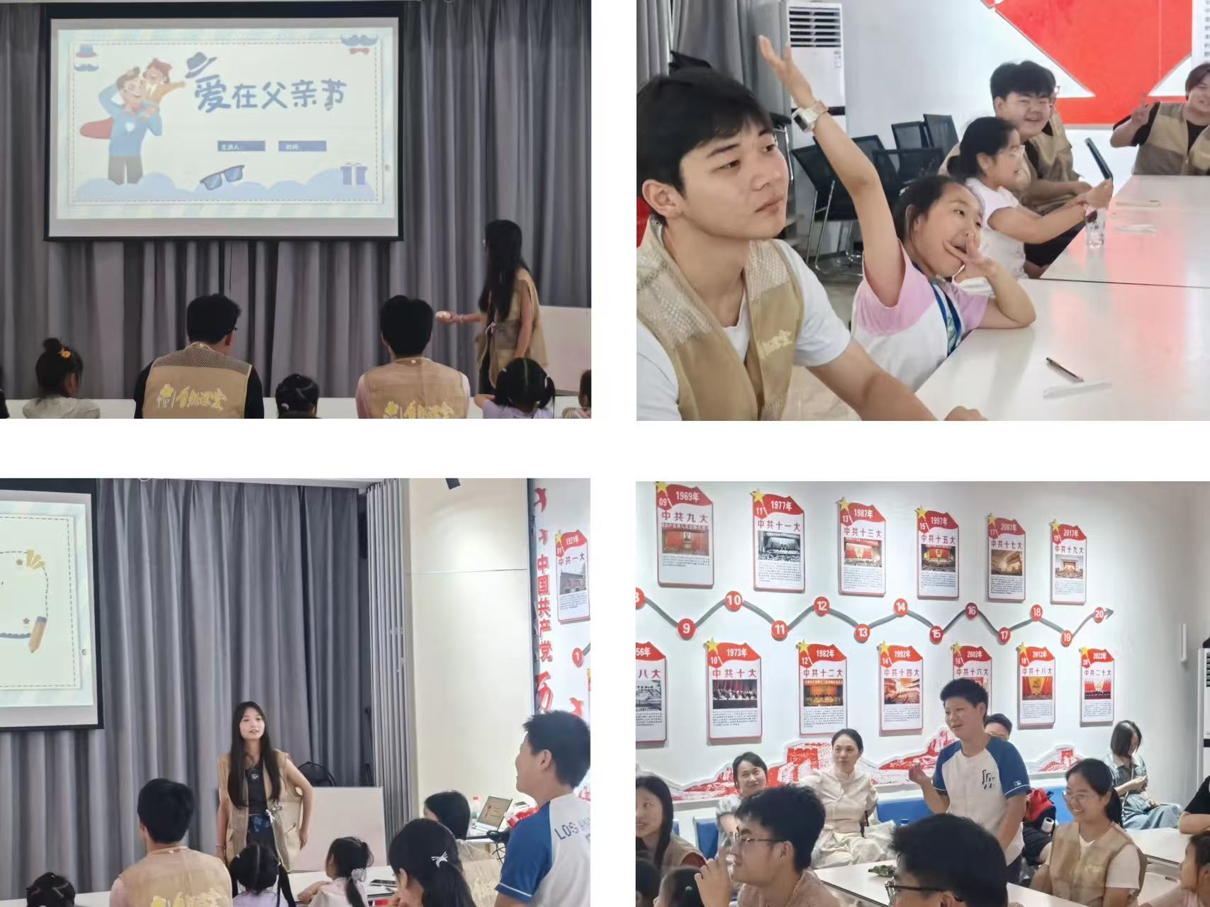 在温馨的视频氛围中,活动进入了第二个环节。身着统一服装的志愿者走到孩子们中间,以亲切的语调开启了关于父亲节的深度讲解。"父亲就像一棵大树,"一位志愿者蹲下身来,与孩子们平视,"他可能不会说很多甜言蜜语,但总会用行动守护着我们。"通过生动的比喻和贴近生活的例子,志愿者们将父亲在家庭中的默默付出娓娓道来。