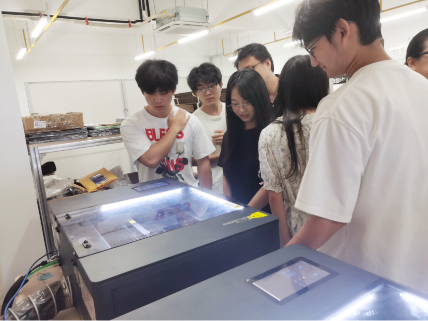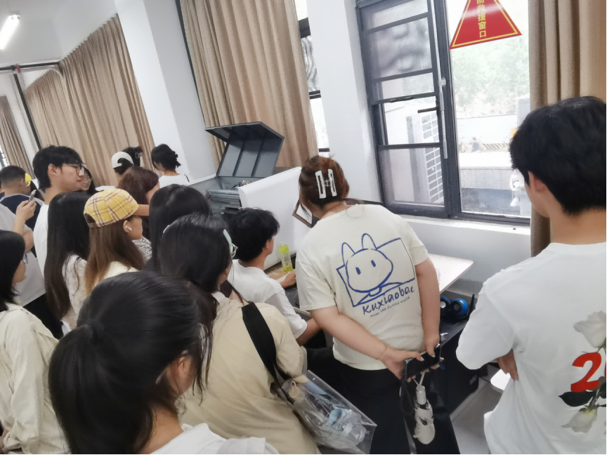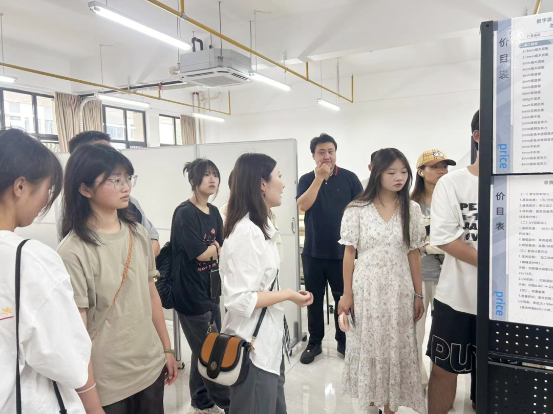 在深圳市蓝鲸未来科技有限公司的副总经理高飞炀陪同下,师生实地参观了深圳市蓝鲸未来科技有限公司驻湖北工业大学数字激光产教融合创新中心的实验室。通过实验员的现场操作及成品的展示,学生深入了解了从创意转换为实物的整个过程。