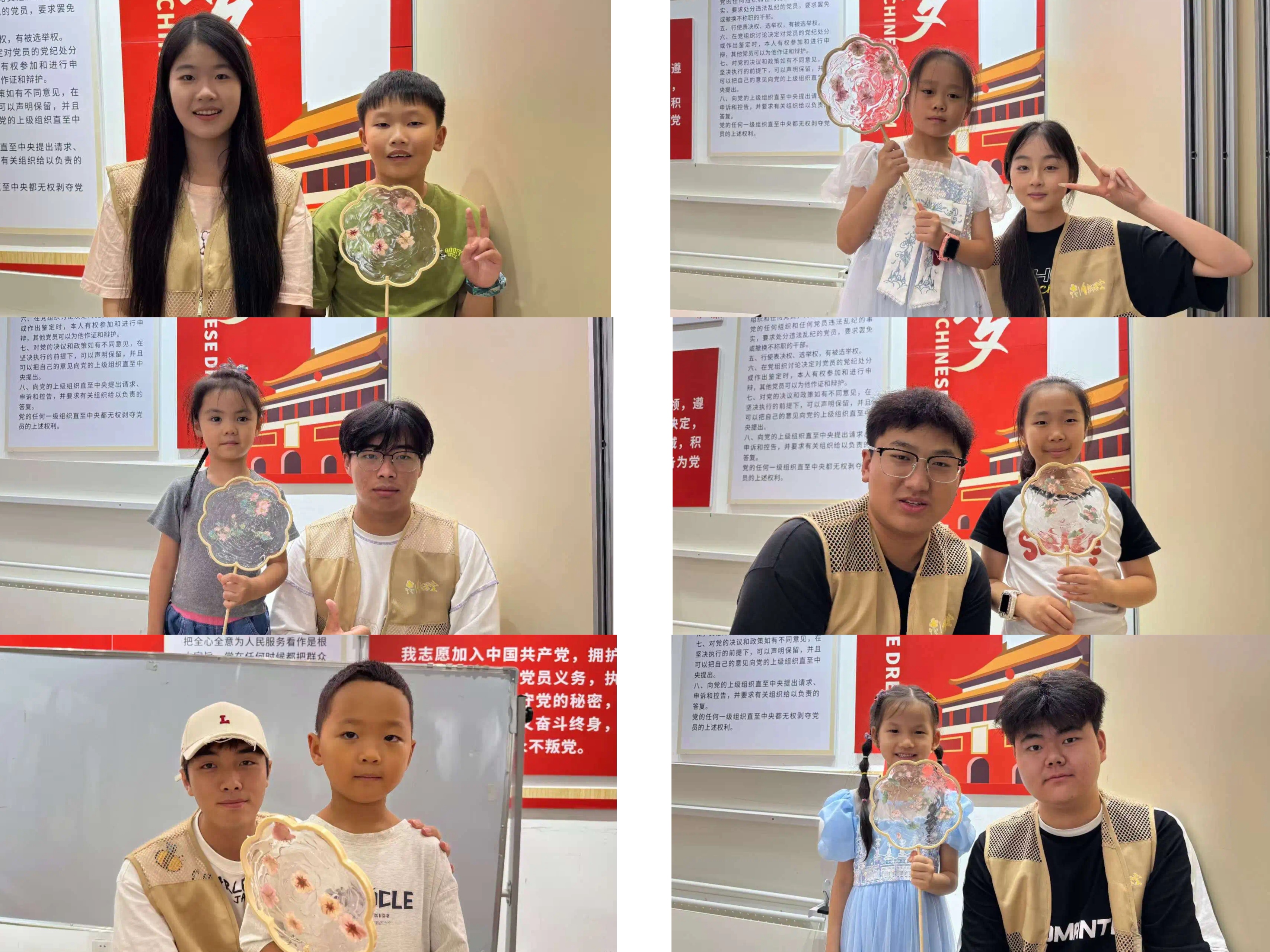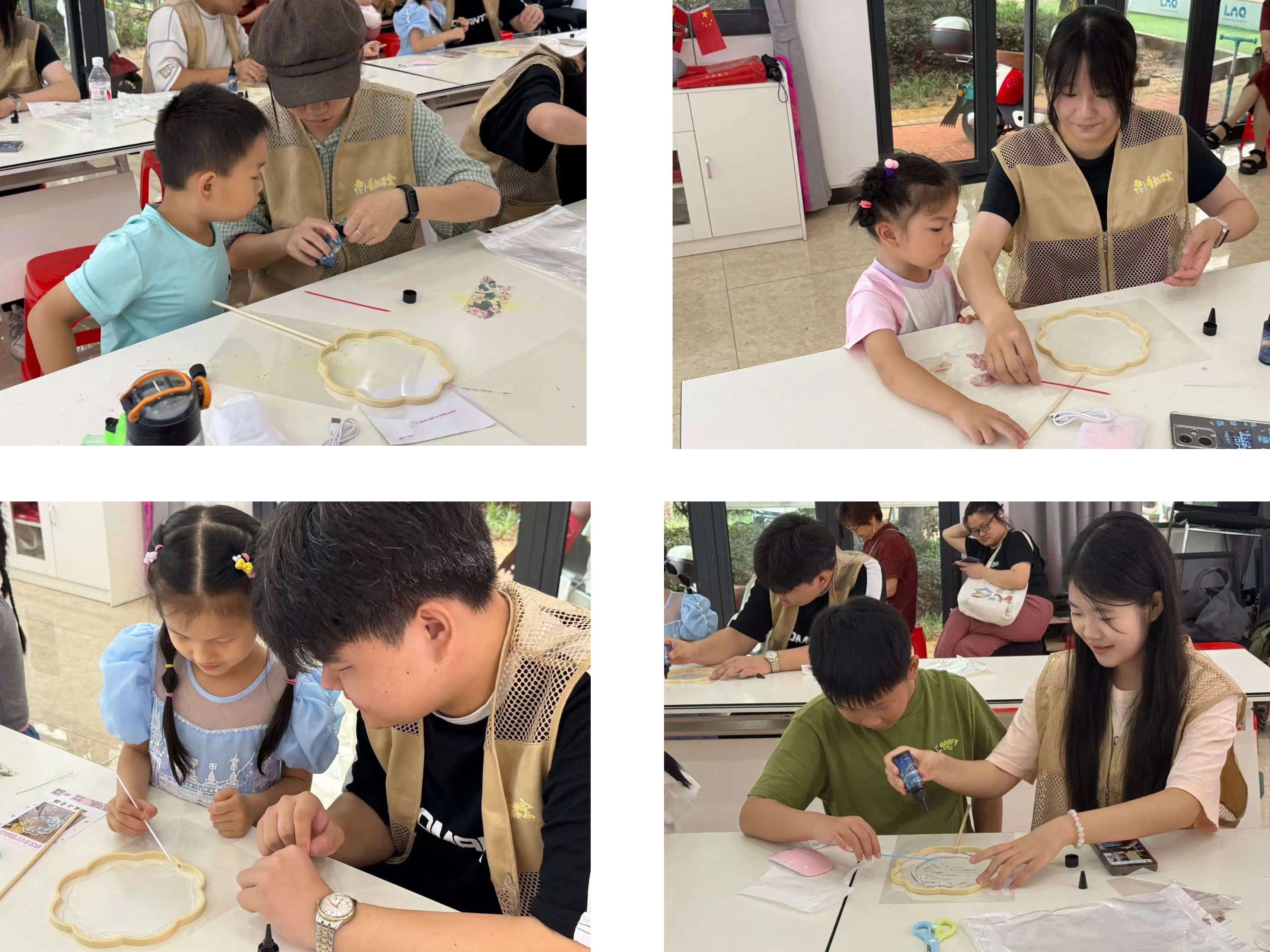 随后,激动人心的手工水扇DIY环节正式拉开帷幕。志愿者们将准备好的材料一一分发到孩子们手中。在志愿者和家长的帮助下,孩子们开启了创意之旅。孩子们用彩笔在扇面上勾勒出心中夏至的模样,有的画了蝉鸣阵阵的树林,有的画了波光粼粼的湖面。接着,小心翼翼地拿起干花,轻轻粘贴,仿佛在给扇面镶嵌上自然的瑰宝,让扇面瞬间变得绚丽多彩。最后,涂上一层uv胶,用固化灯加固,一把把独具匠心的手工水扇就诞生了。