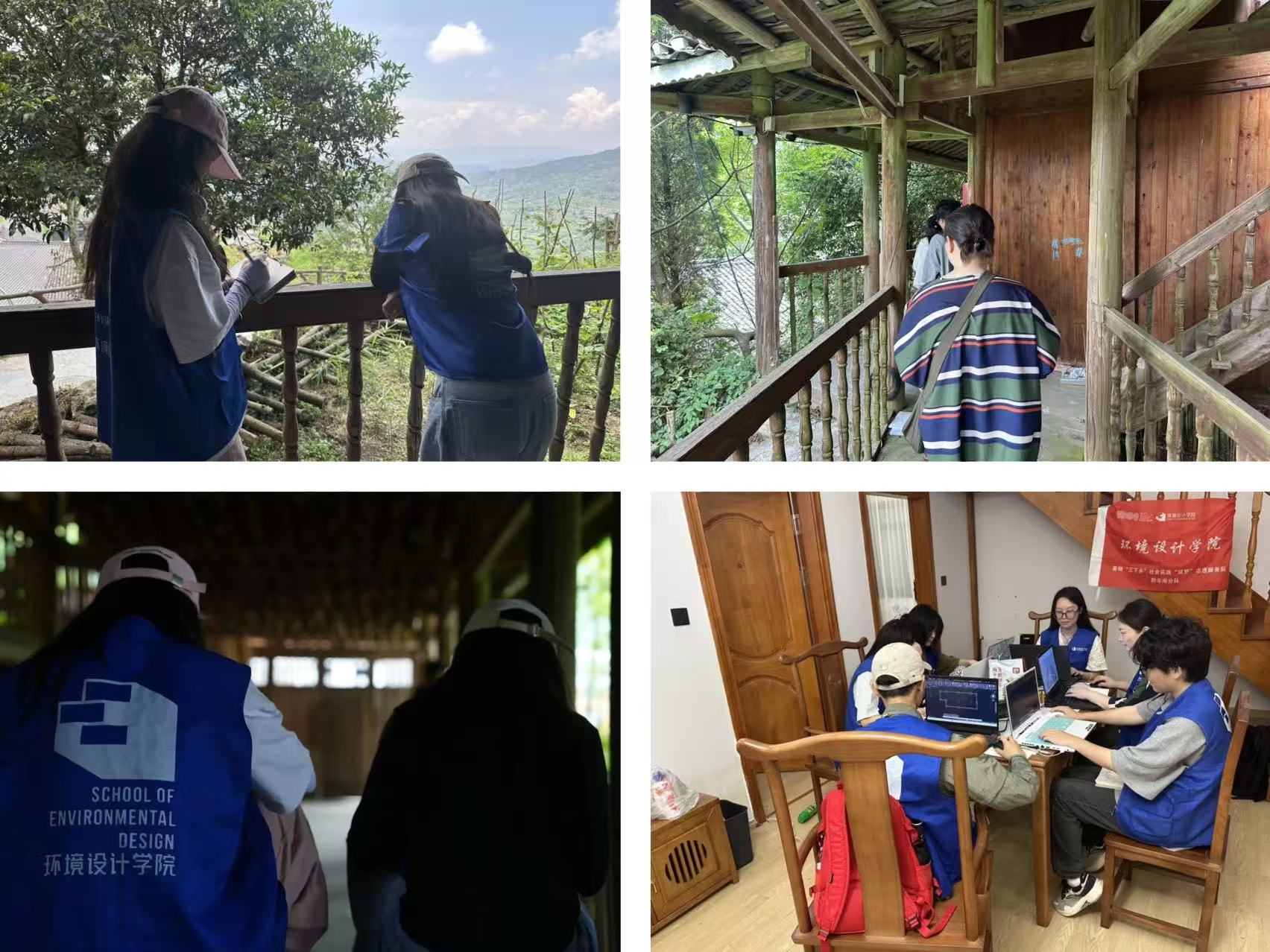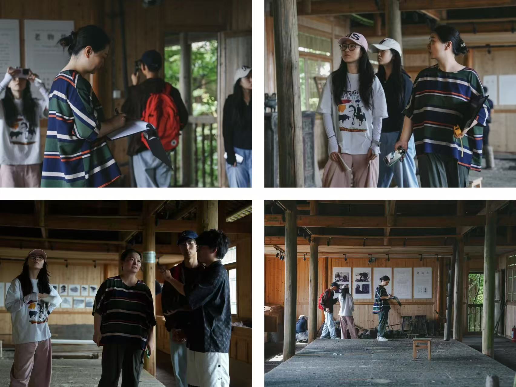 到达当地后,队员们将课堂搬到了田间地头。在炎炎烈日下,团队奔赴堂安侗寨生态博物馆项目现场,全身心投入实地测绘工作。卷尺与测距仪在队员们手中灵活切换,每一处空间现状、建筑肌理和空间尺度都被细致记录下来,汗水浸湿了衣衫,却丝毫没有动摇对侗寨原生风貌的敬畏之心。带队教师陈凌强调:“精确测量是设计的基础,我们希望在后续设计中,能让现代功能与侗族传统建筑的精髓完美融合。”当晚十点,队员们返回驻地后,马不停蹄地投入到测绘数据的数字化处理与可视化分析工作中,只为将白天的成果精准转化为设计的基石。