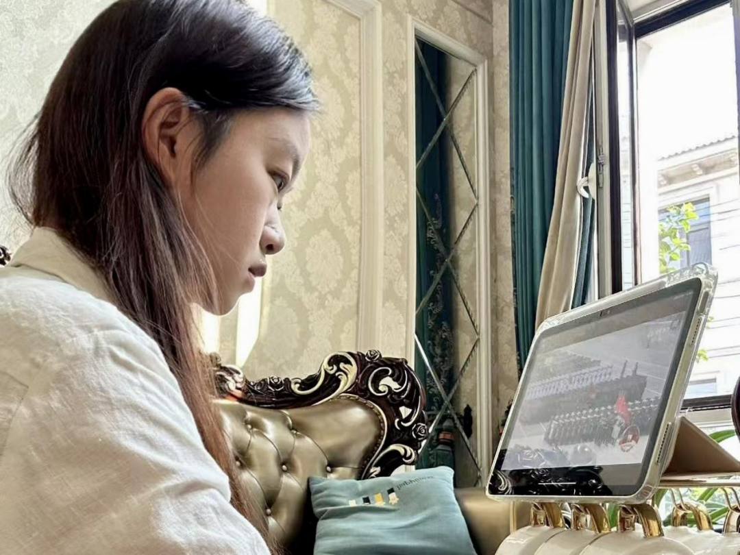 与此同时,学院的学生们也通过电视、网络等渠道观看了阅兵式。