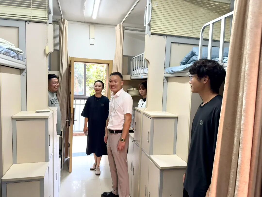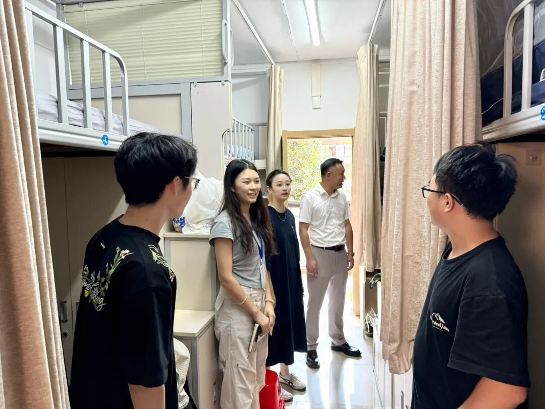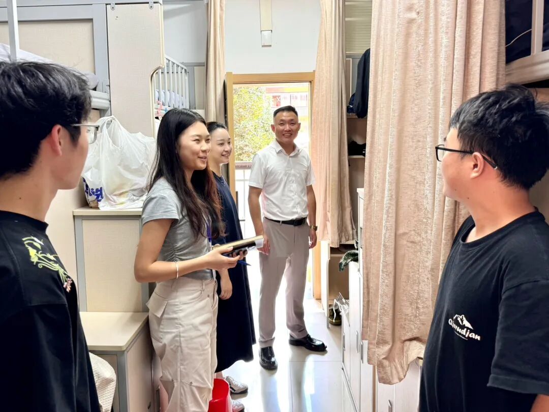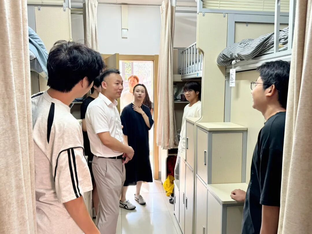 走访过程中,学院领导与辅导员每到一间宿舍,都耐心询问大家的入住情况。从行李是否顺利搬运、床铺是否舒适,到宿舍水电使用是否便捷、生活用品是否齐全,逐一细致查看,让新生感受到“家”的温暖。