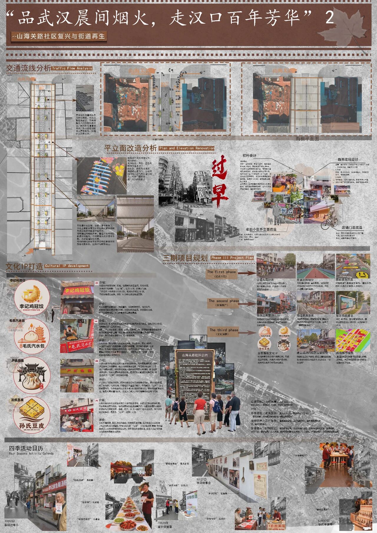 近日,2025年武汉国际创意设计大赛(金黄鹤奖)评选结果揭晓。yl7703永利集团师生跨专业组队报送的设计项目:《品武汉晨间烟火,走汉口百年芳华——山海关路社区复兴与街道再生》,在“山海关路片街道空间与文化标识重塑方案”命题中获得专业组一等奖。