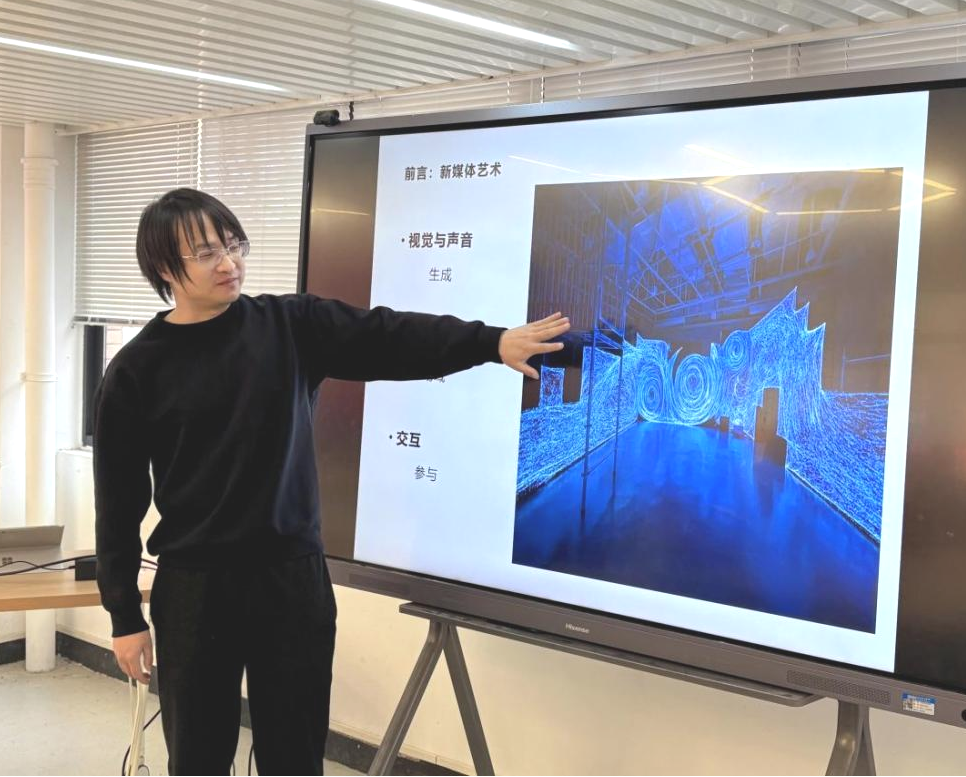 分享会上,陈老师从数字技术为艺术注入新活力入手,指出数字艺术作为新媒体语境下的重要形态,其核心在于艺术与科技的深度融合。数字科技已不仅是创作工具,更成为艺术表达的有机组成部分。无论是算法生成的动态视觉作品,还是虚拟现实构建的沉浸式交互场景,亦或是借助大数据与人工智能实现的创意表达,数字技术都打破了传统艺术的创作边界与表现形式,使艺术家能够通过代码、数据、光影等多种媒介,传递对世界的感知与思考。