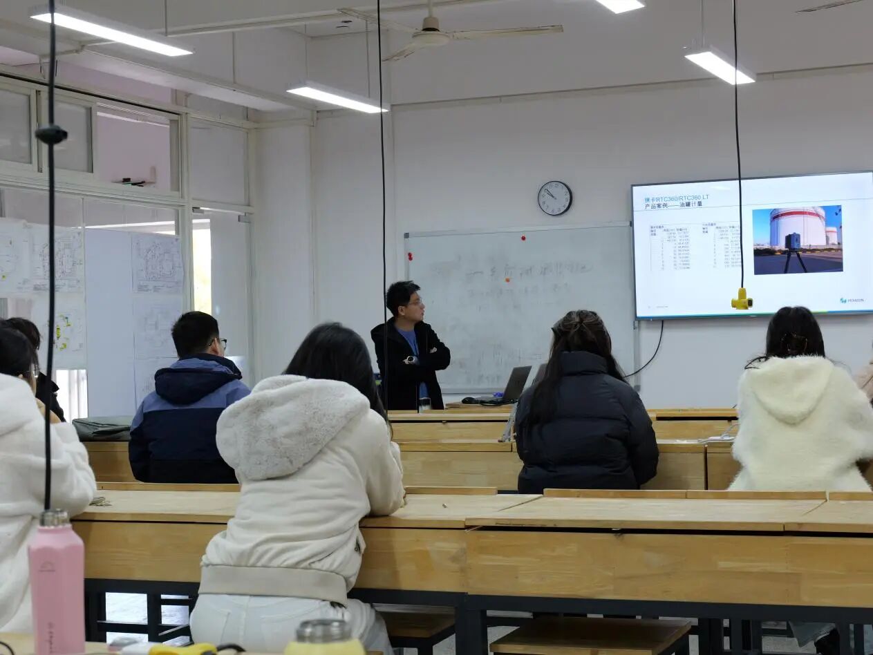 11月18日,活动在介绍海克斯康公司概况及校企合作规划中拉开帷幕,帮助学生明确培训目标与方向。随后,讲师系统解析三维激光扫描技术的原理与行业现状,为学生构建起清晰的技术认知体系。在《应用案例分享》环节中,真实项目的展示让同学们直观感受到该技术在实际场景中的应用价值。下午的课程更加注重动手实践,从设备准备、功能讲解,到户外实地操作训练,讲师团队全程手把手指导,帮助学生快速掌握设备基本操作流程。