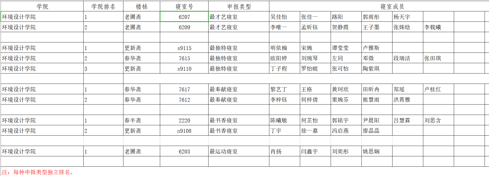 此次活动不仅为校园生活添了别样色彩,更让室友们在协作与分享中加深了羁绊。感谢每一位同学的热情参与,愿这份朝夕相伴的情谊长存,愿青春里的温暖与热爱永不褪色!现在学院排名如下: