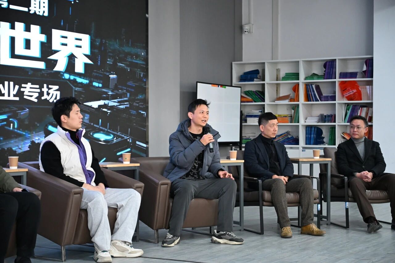 武汉天空盒产学研信息咨询有限公司 校企合作总监 陈骏飞;以及同样来自武汉天空盒产学研信息咨询有限公司负责游戏三维教研工作的薛新明老师。此外,我们还邀请到一位彩蛋嘉宾——武汉辰星动漫科技有限公司的张巍先生。虽然此次未正式入座嘉宾席,但他已是我们的老朋友,之前就曾走进学院,为老师们带来过干货满满的AIGC教学分享。这次他也来到了现场,一起听听聊聊,为这场跨界对话默默助力。