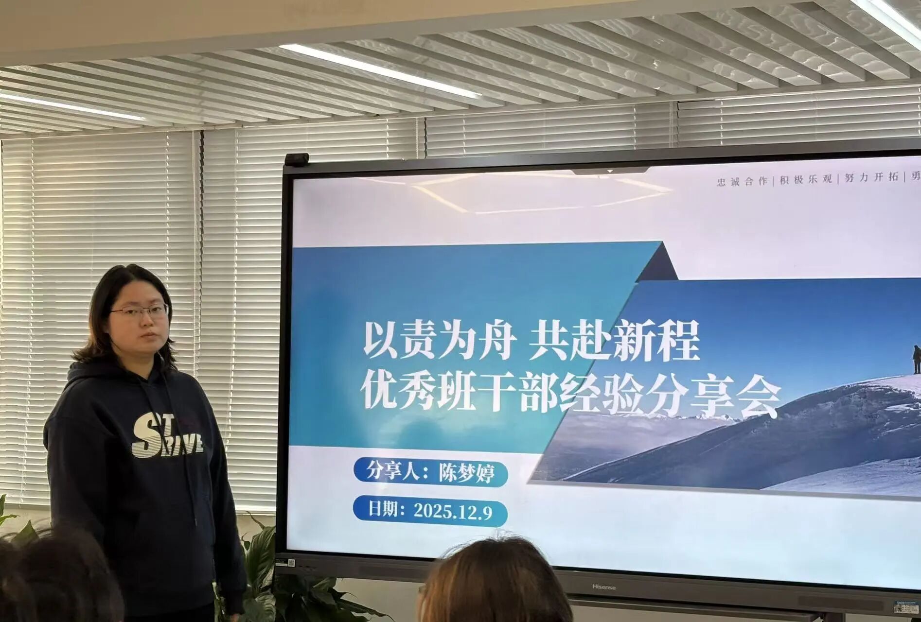 12月9日,yl7703永利集团在C9“一站式”学生社区大厅成功举办优秀学生干部经验分享会。本次活动邀2024-2025学年度“优秀学生干部”荣誉称号获得者陈梦婷同学,围绕“以责为舟,共赴新程”这一主题,与在场同学展开深入交流。陈梦婷结合自身成长轨迹与实践感悟,以真挚的语言讲述了如何在承担责任中沉淀自我、在投身热爱中坚定前行的故事。她通过生动的事例与反思,诠释了“责任”不仅是一种担当,更是推动个人与集体共同前进的精神舟楫。分享中,她鼓励同学们主动拥抱责任、以初心照亮征途,在服务与奉献中实现个人价值与团队发展的统一。